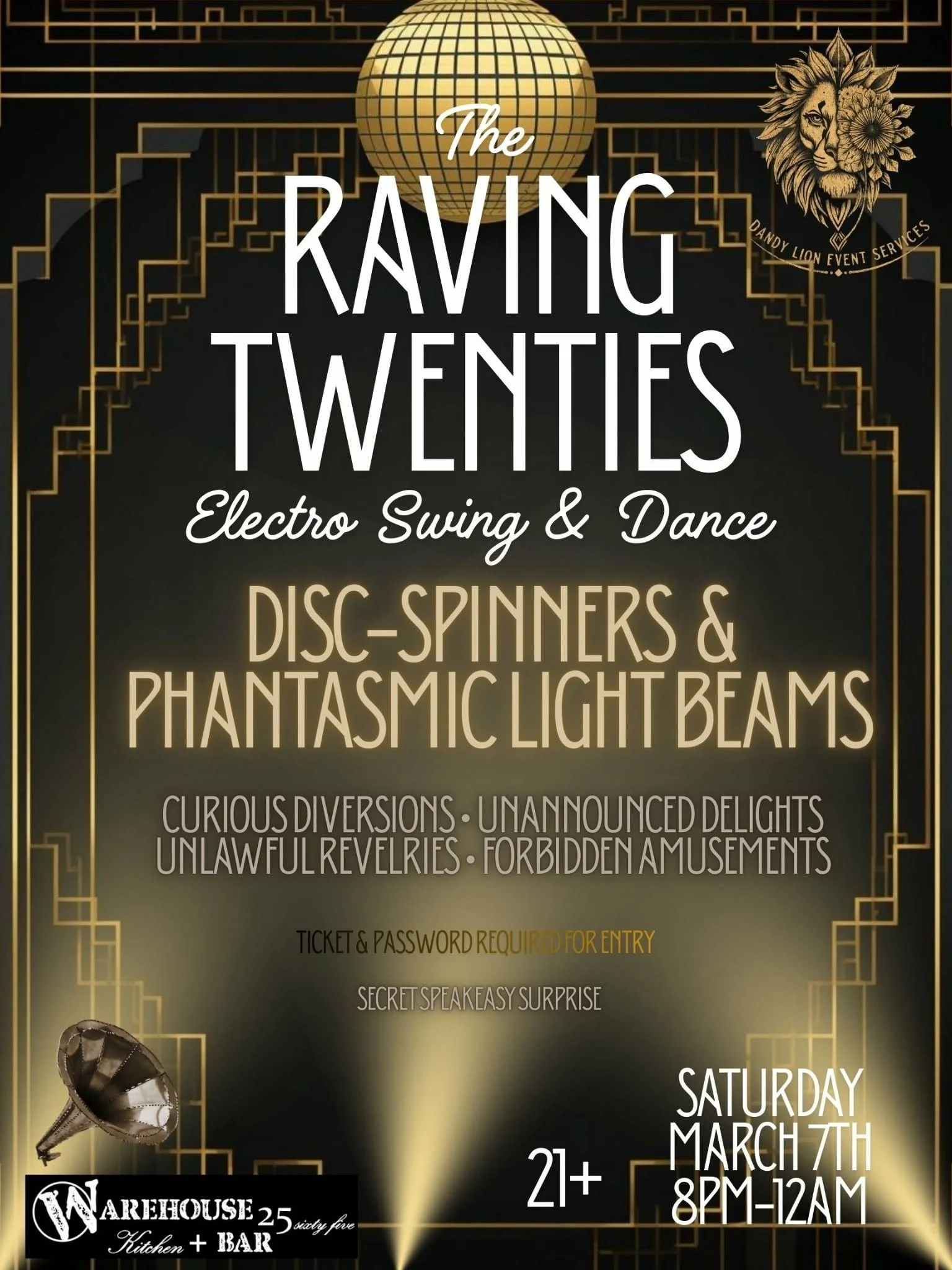 RAVING TWENTIES * Electro Swing & Dance Party Saturday, March 7, 2026 8:00 PM 11:30 PM 20:00 23:30 Google Calendar ICS THIS IS GONNA BE A FUN ONE, so grab some friends and dress to impress and come spend a night with us… CLICK HERE TO PURCHASE Buy Tickets on Eventbrite Buy Tickets